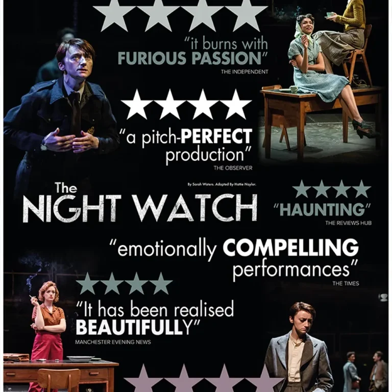 "The Night Watch" is a historical novel by Sarah Waters, published in 2006, which tells the interconnected stories of four Londoners during World War II. The novel, set in the 1940s and moving backward in time to the start of the war, explores themes of desire, regret, sexual adventure, and heroism. It received praise for its structure, characterisation, and depiction of queer lives and experiences during the war ( cast size 8)